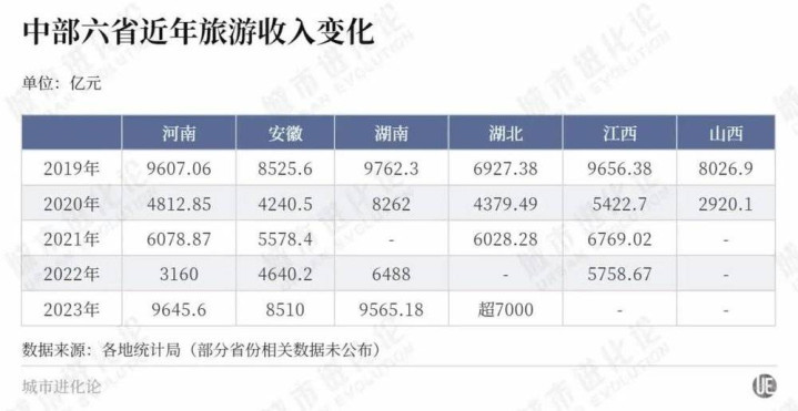 这亦然各地旅游大省纷纷锁定“万亿目标”的紧迫要素。其实,早在2019年,中部省份无数如故站在“万亿俱乐部”的门前——湖南、河南、江西2019年旅游总收入均高出了9600亿元,距离万亿仅一步之遥,安徽、山西旅游总收入在8000亿元以上,湖北也接近7000亿元。