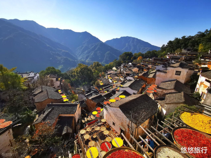 日间逛徽派古村庄,望望晒秋场景。夜晚到婺女洲,华灯初上,百米板凳长龙穿梭于白墙黛瓦的胡衕,一说念敲锣打饱读。火壶、打铁花,年味儿浓厚。