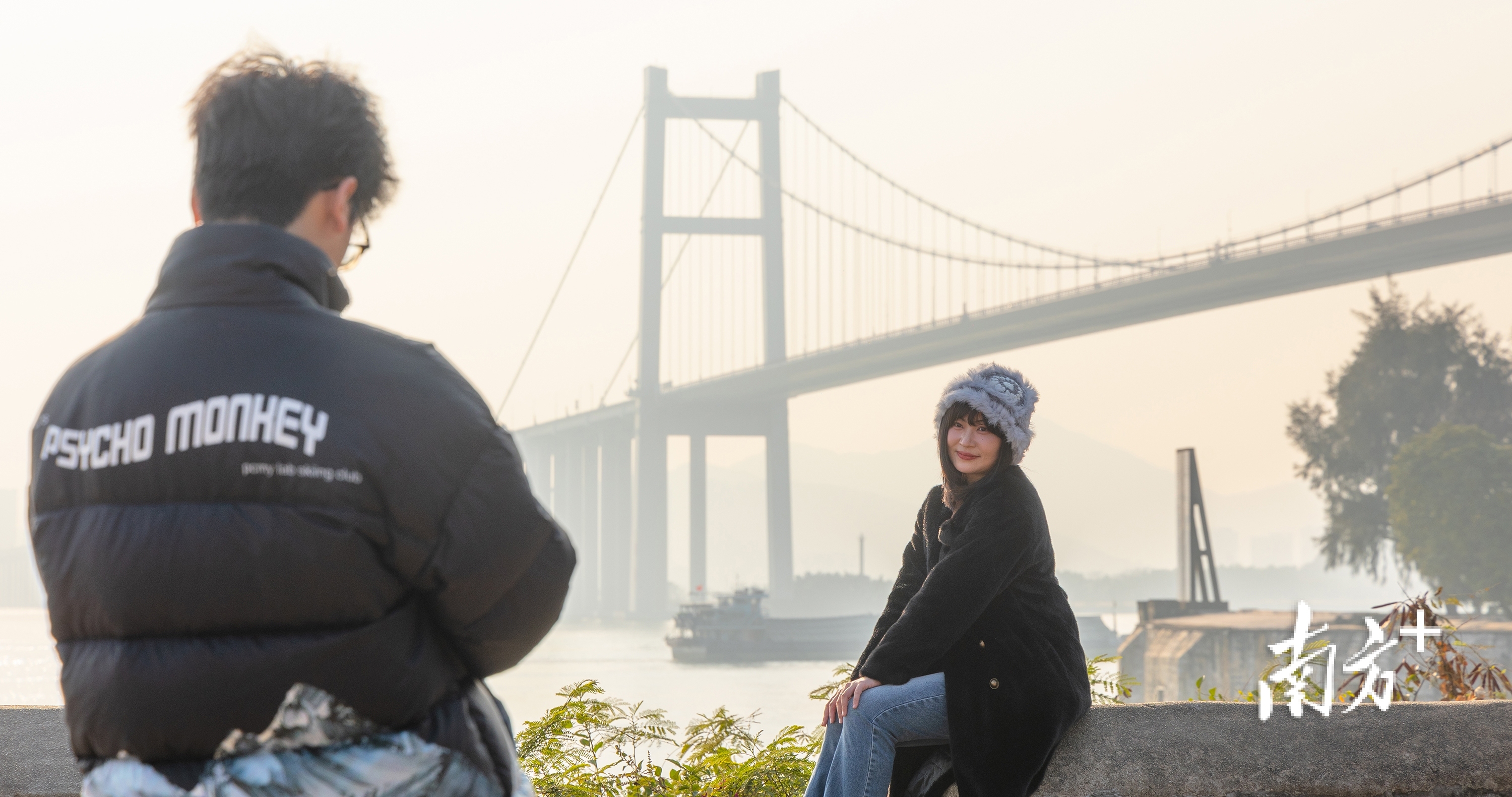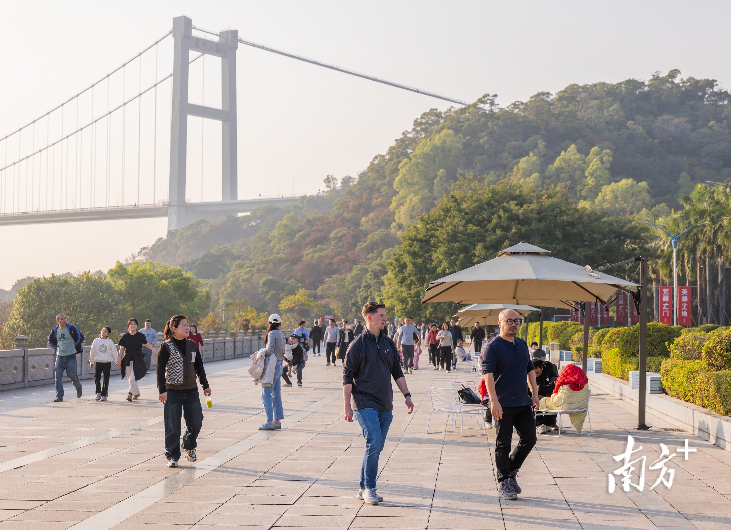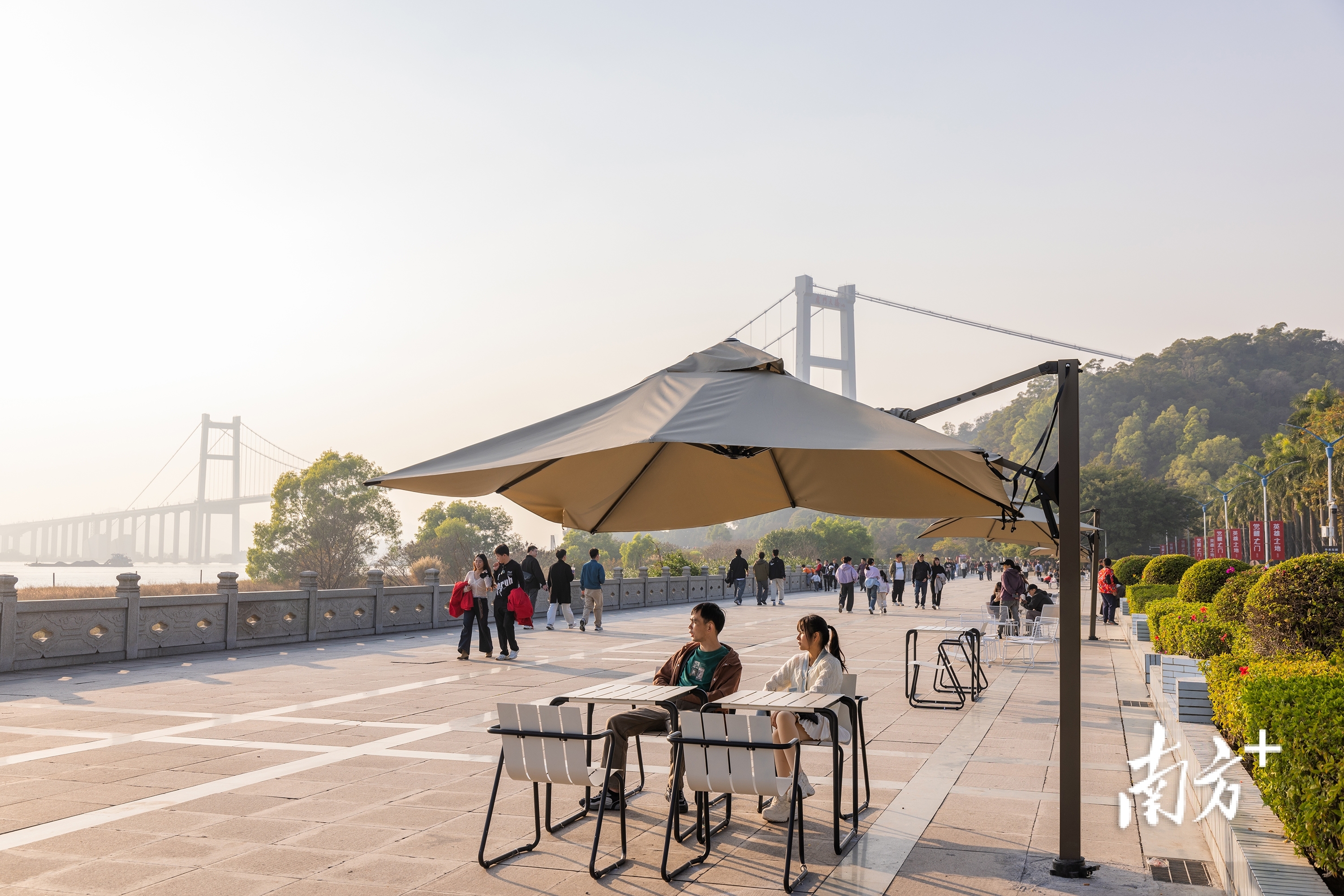 在虎门大桥的巍峨衬托下