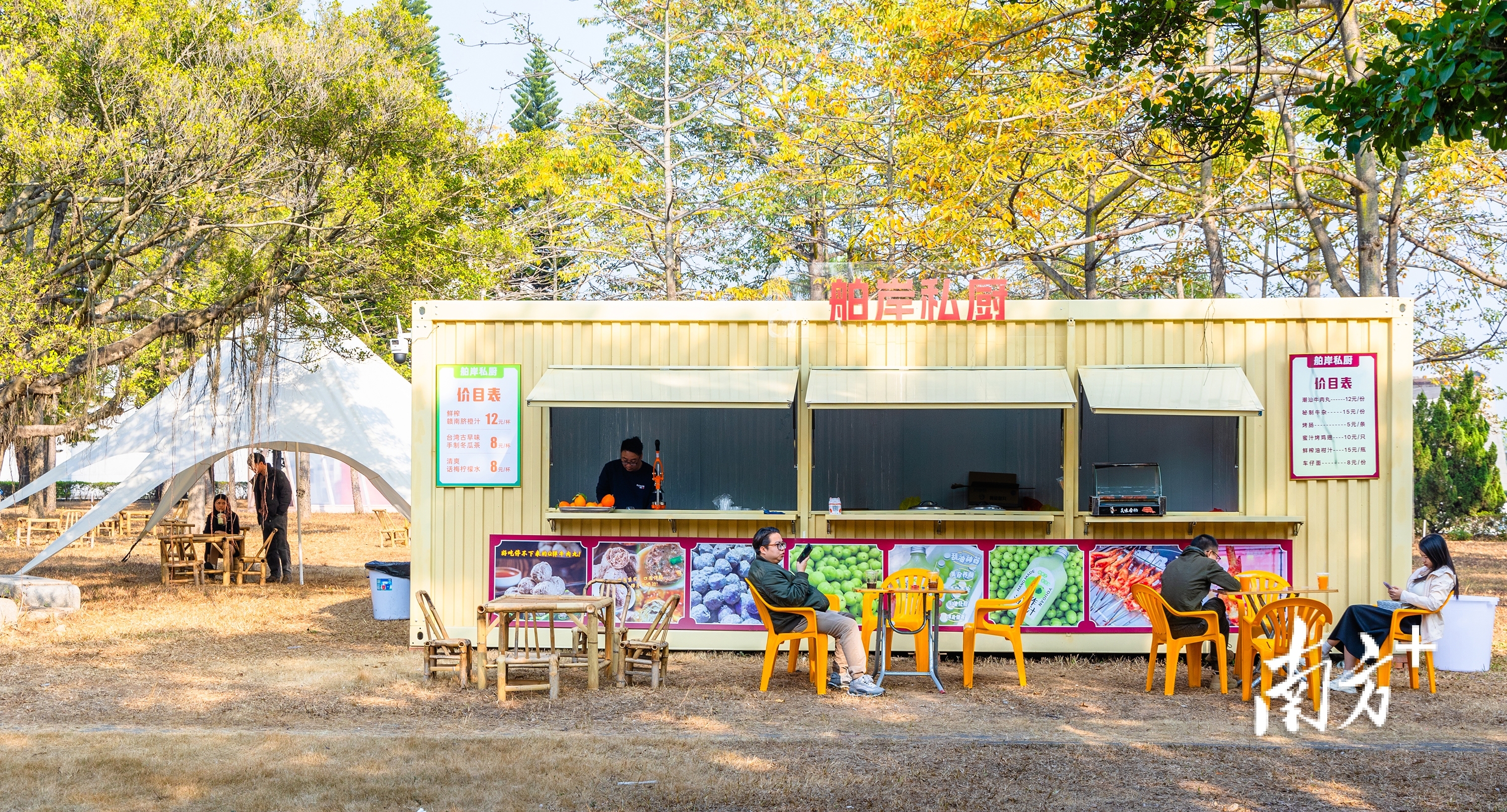 已增设遮阳伞与失业桌椅