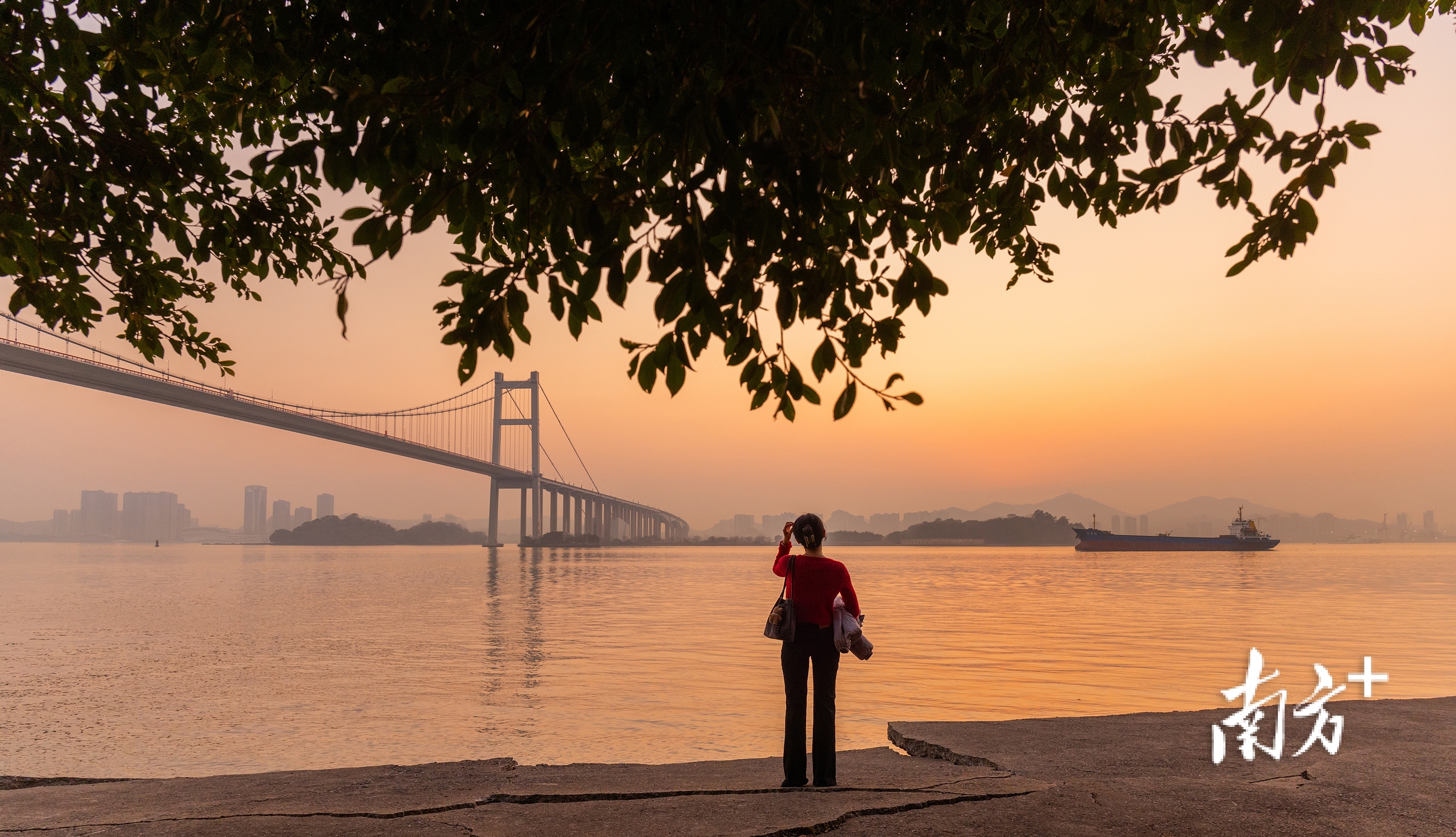 远方虎门大桥横跨江面