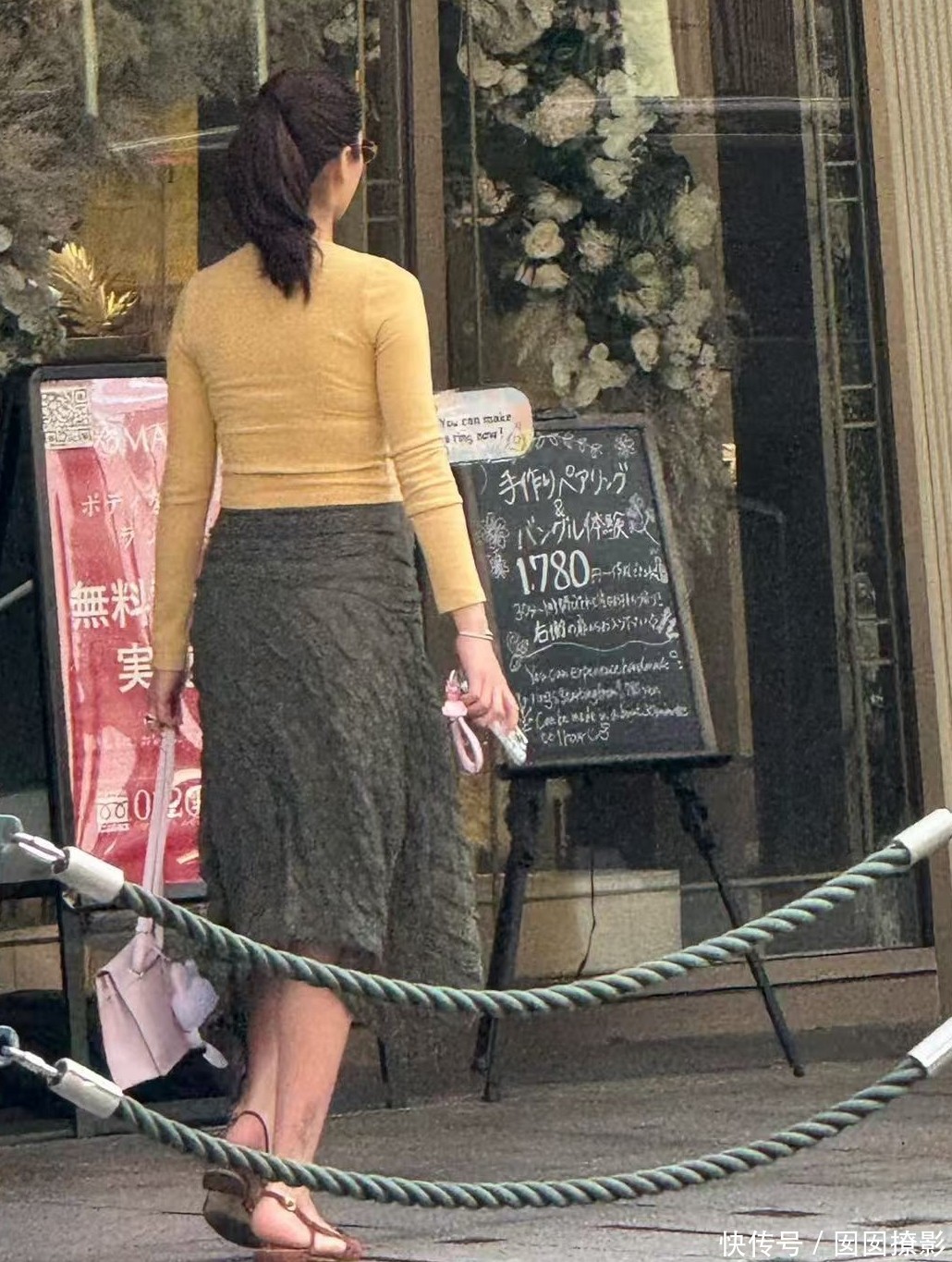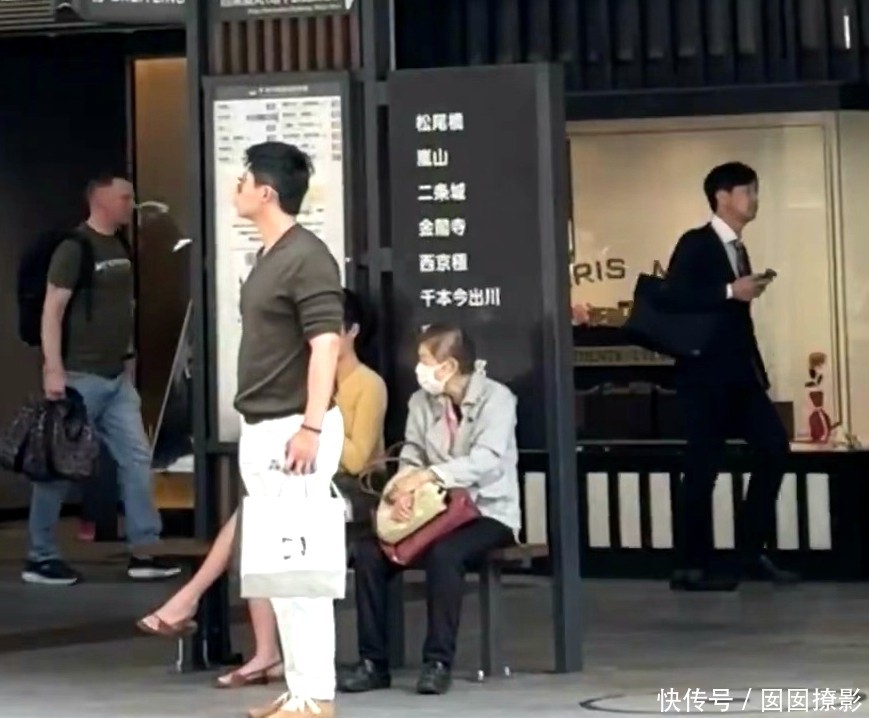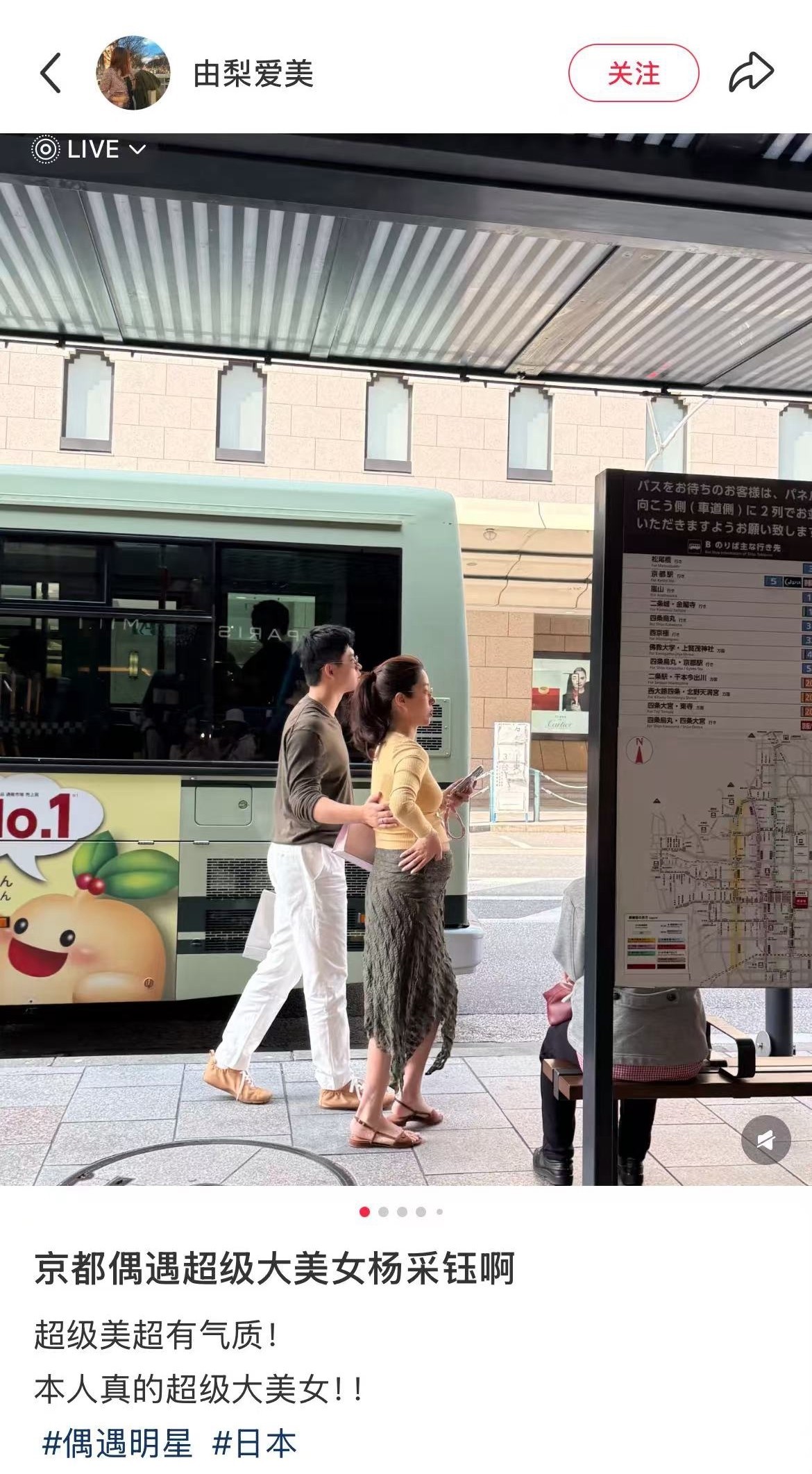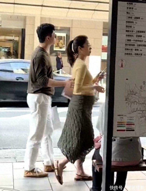 4月17日,有网友在日本京王人偶遇杨采钰,她挺着孕肚,跟别称须眉在街头等车。