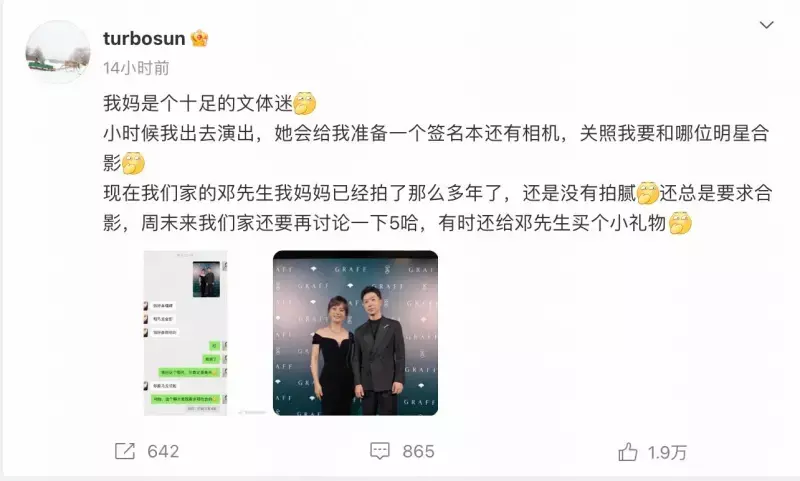 孙俪示意,我方姆妈是个文学迷,一直心爱和明星合影、署名。