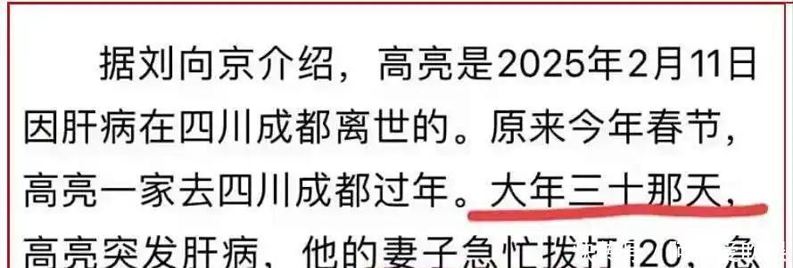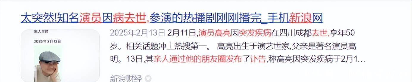 鹤发东说念主送黑发东说念主在本年的2月11号,网上传出了演员高亮的噩耗。
