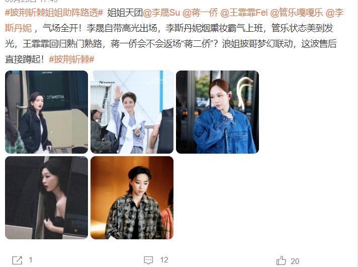 通过路透,咱们不错发现李晟、管乐、王云雾、蒋一侨、李斯丹妮参与录制,其中:李晟助力X-brother,王云雾助力风光老咖,蒋一侨助力TOP登陆少年,管乐助力大湾仔,李斯丹妮助力新时间。
