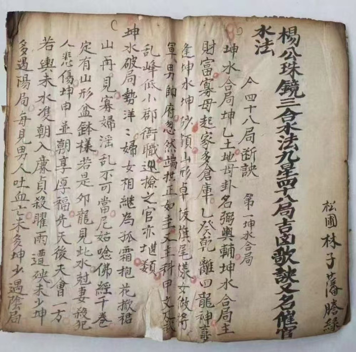 由松圃林子藩誊录、戊戌年重订的《杨公珠镜三合水法九星四十八局福祸歌诀》,是一部凝华千年风水奢睿的堪舆宝典。全书以手本方式传世,共 100 单面,字字珠玑,体系严谨,号称传统风水文化的集大成之作。