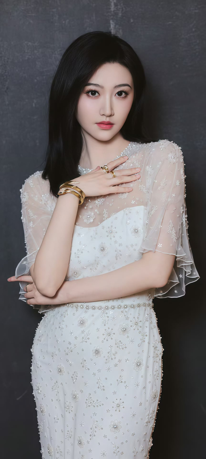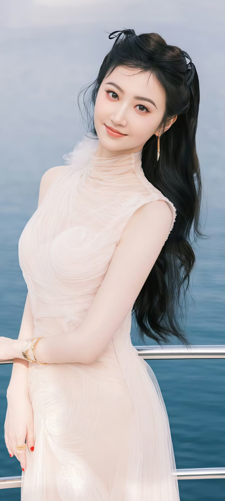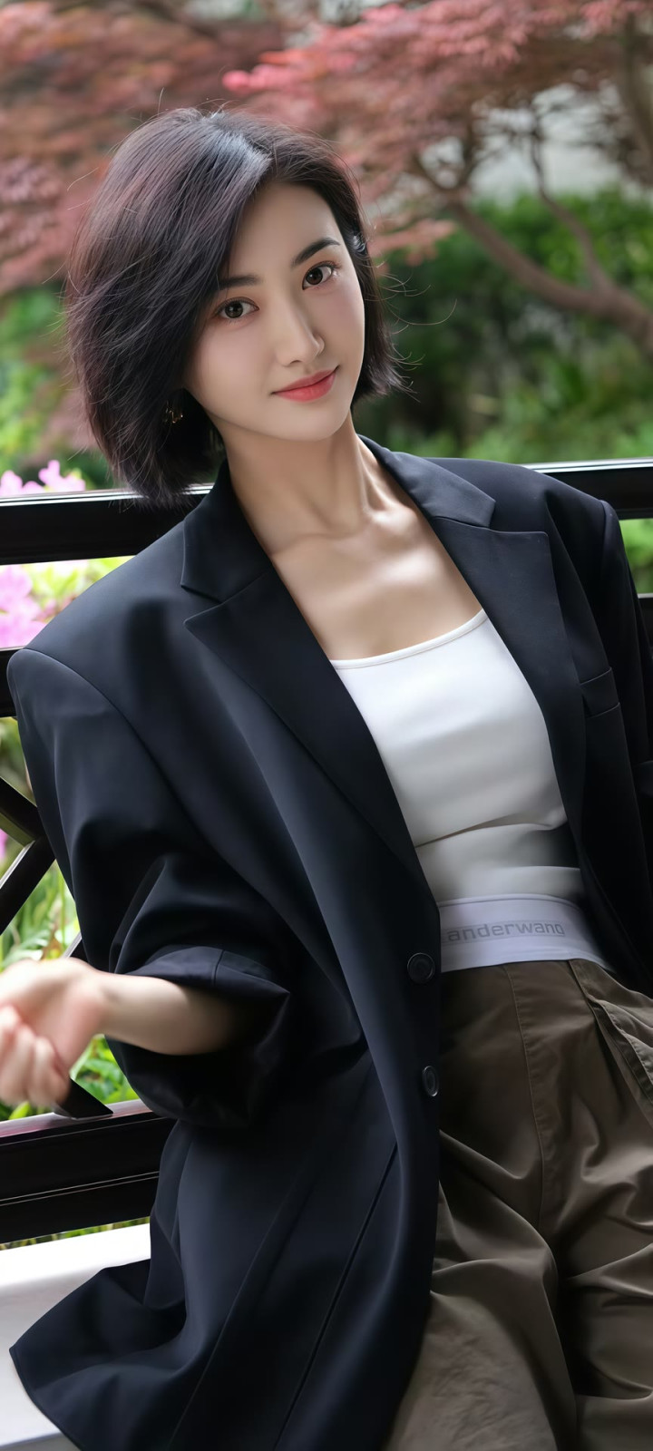 她耳畔的金色耳环工致致密,成为造型里的点睛之笔,既不会太过张扬,又为勤俭的穿搭增添了几分致密感。镜头前的景甜微微侧头,眉眼间带着温和的笑意,麻花辫垂在肩头,灵动又俏皮,鼓胀看不出年级感。