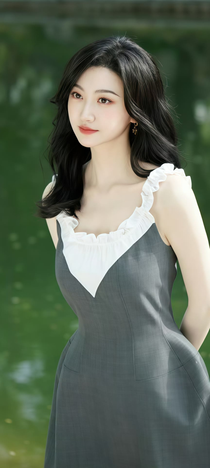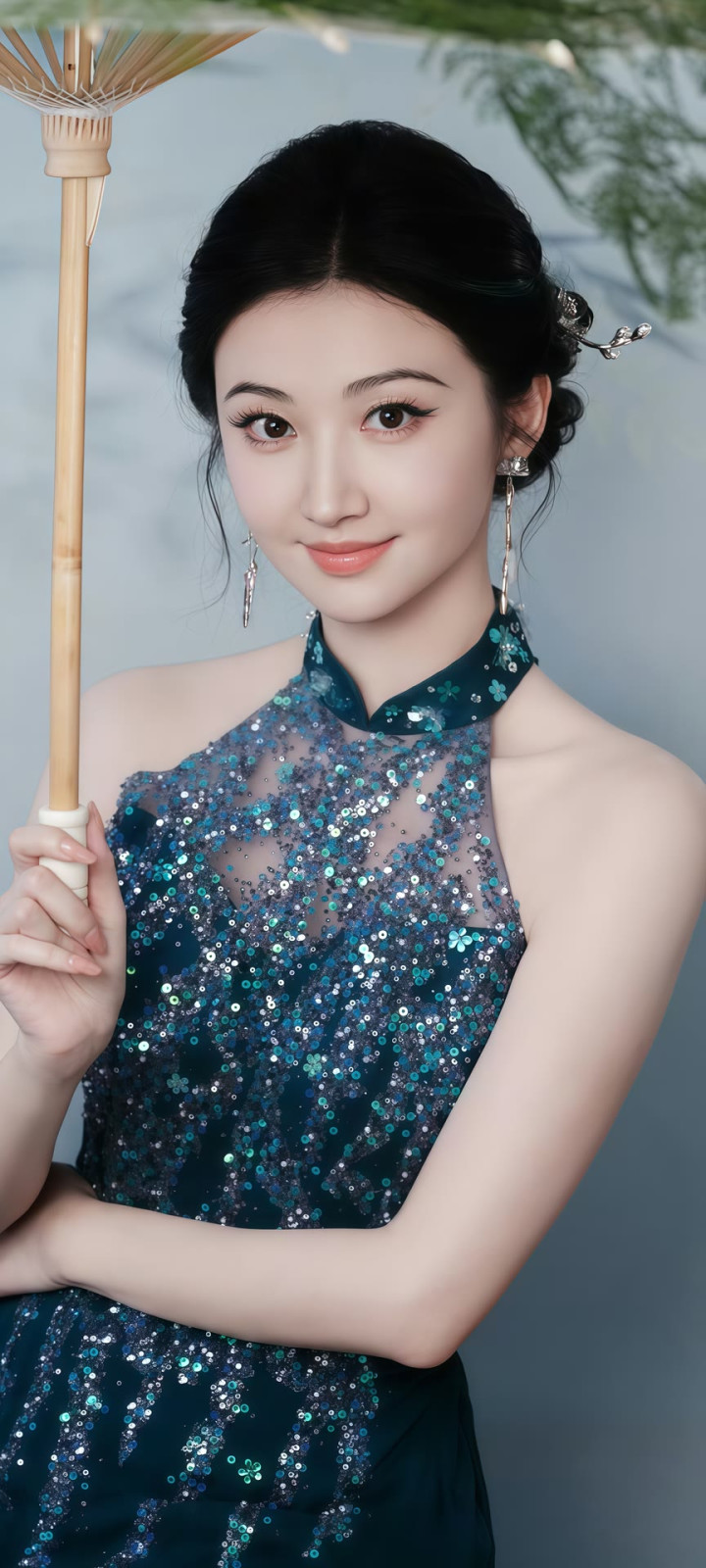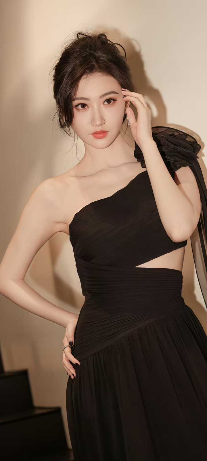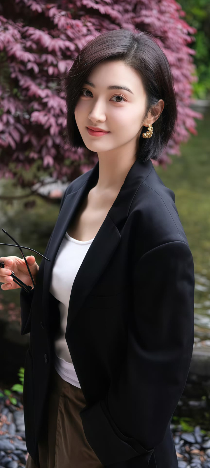 她耳畔的金色耳环工致致密,成为造型里的点睛之笔,既不会太过张扬,又为勤俭的穿搭增添了几分致密感。镜头前的景甜微微侧头,眉眼间带着温和的笑意,麻花辫垂在肩头,灵动又俏皮,鼓胀看不出年级感。
