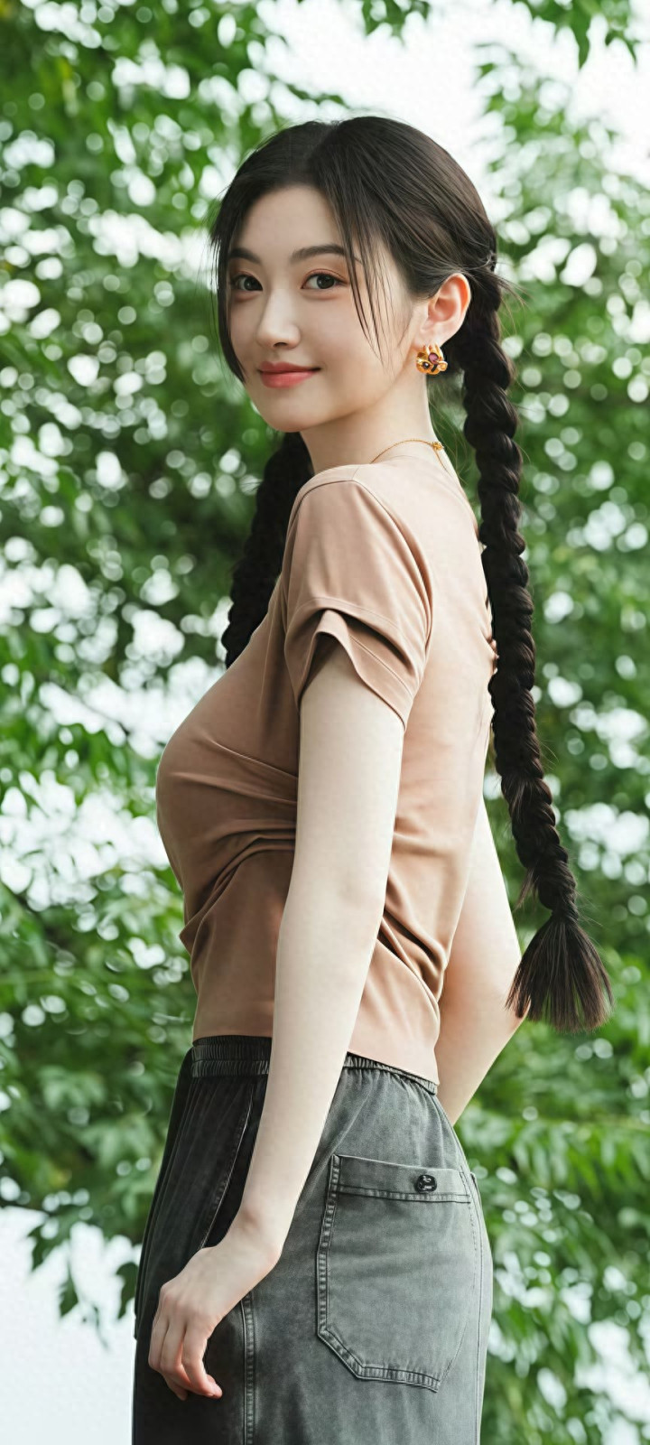 景甜一组户外随拍曝光,画面里的她扎着象征性的双麻花辫,搭配浅棕色露背短袖和深灰色半身裙,勤俭的穿搭却被她穿出了别样的簇新韵味。翠绿的树叶看成布景,与她的造型相互烘托欧洲杯体育,总共东谈主的景象糟蹋又当然。