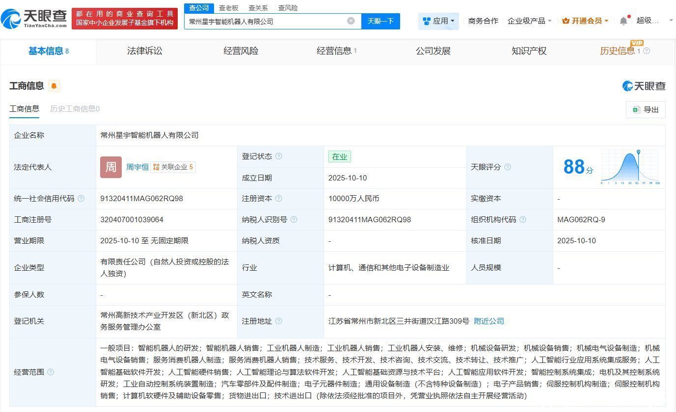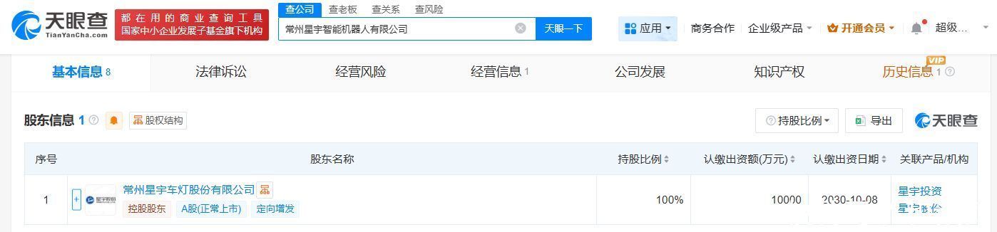 天眼查App知道,近日,常州星宇智能机器东谈主有限公司建立,法定代表东谈主为周宇恒体育游戏app平台,注册本钱1亿,计较界限包括智能机器东谈主的研发、智能机器东谈主销售、工业机器东谈主制造等。鼓动信息知道,该公司由星宇股份(601799)全资抓股。