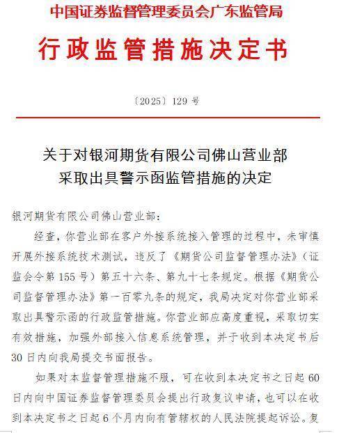 针对以上问题欧洲杯体育,广东证监局决定对星河期货有限公司佛山交易部收受出具警示函的行政监管步履。