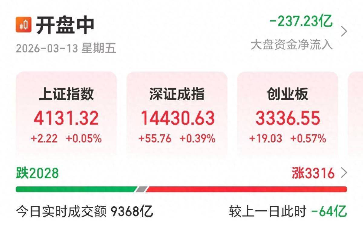 【大河财立方音讯】3月13日,A股指数低开高走,沪指拉升翻红,深成指涨超0.3%,创业板指拉升涨0.57%体育游戏app平台,科创综指跌0.25%。化工、锂电、钢铁等场地涨幅居前体育游戏app平台,沪深京三市飞腾个股近3300只。