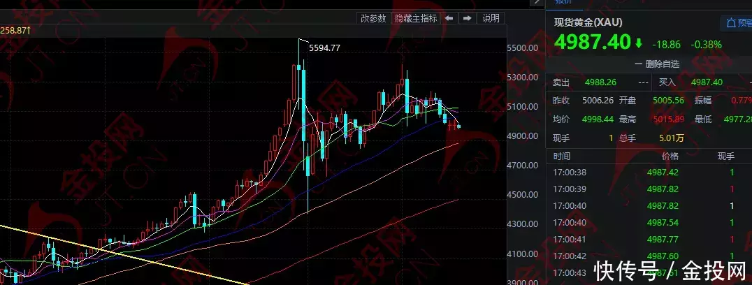 隔夜,现货黄金基本捏稳,围绕5000好意思元大关宽幅触动,最终收跌0.02%,报5005.45好意思元。当天欧市盘中,黄金延续跌势,咫尺在4992好意思元隔邻徜徉。